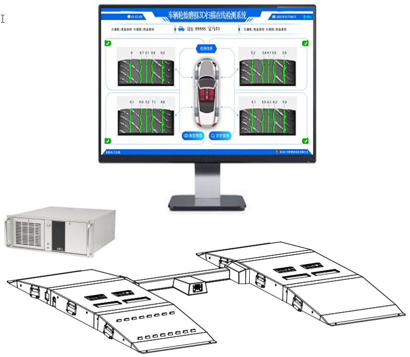本系統(tǒng)是由北京匯豐隆智能科技有限公司開發(fā)并擁有自主知識產(chǎn)權(quán)的一款全自動化乘用車輪胎磨損3D掃描在線檢測系統(tǒng)。車主/司機僅需駕駛車輛從檢測系統(tǒng)駛過,檢測系統(tǒng)即可快速、準確的檢測出車輛輪胎的磨損狀態(tài)并可在顯示屏或及智能電視上顯示出本次檢測結(jié)果。檢測報告具有精度高、速度快、顯示界面信息齊全等特色。同時,檢測報告記錄了被檢測車輛的車牌及車型信息,便于日后方便準確查詢及對比。